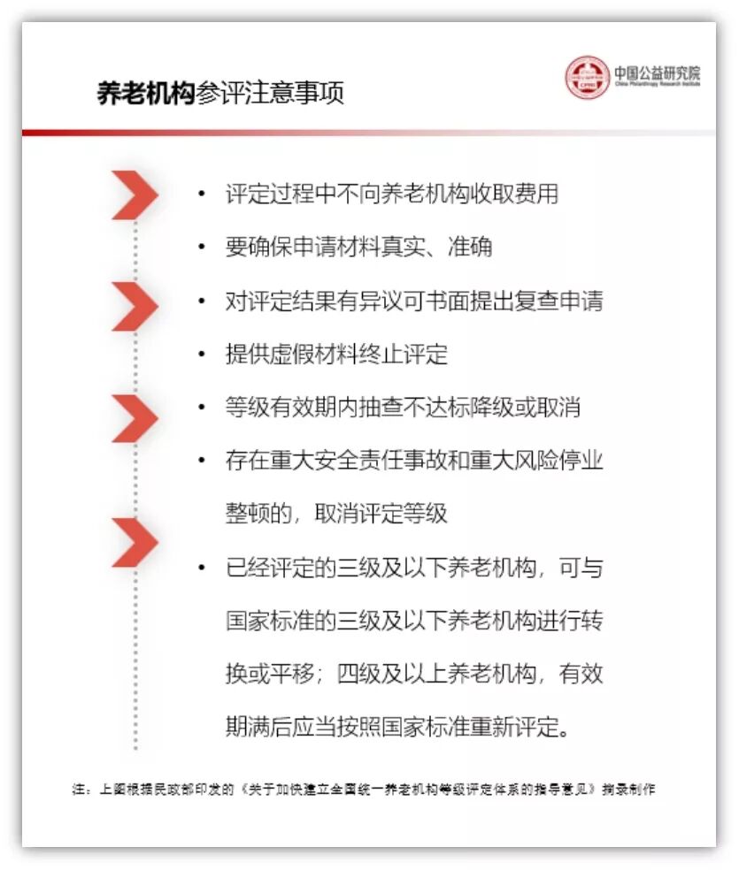 關(guān)于養(yǎng)老機(jī)構(gòu)等級(jí)評(píng)定,您可能有以下問(wèn)題,現(xiàn)根據(jù)《民政部關(guān)于加快建立全國(guó)統(tǒng)一養(yǎng)老機(jī)構(gòu)等級(jí)評(píng)定體系的指導(dǎo)意見(jiàn)》(民發(fā)〔2019〕137號(hào)),為您梳理如下: