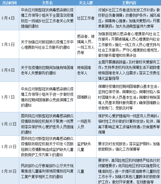 與此同時(shí),陜西、安徽、黑龍江、山西、湖北也出臺(tái)了涉及社區(qū)工作者、志愿者、社會(huì)工作者以及困難群眾等特定人群的權(quán)益保障和關(guān)心關(guān)愛(ài)政策。