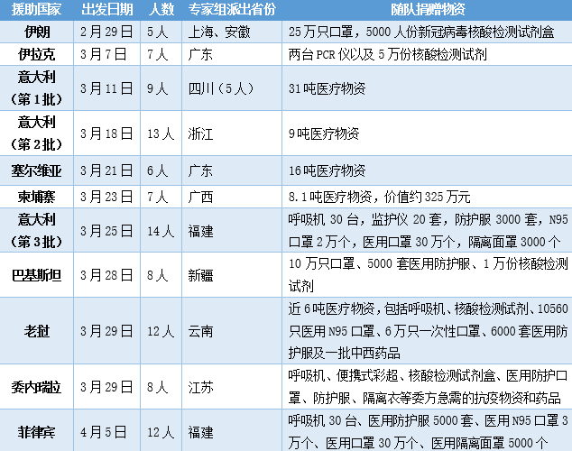 表2 中國(guó)政府派出的11個(gè)醫(yī)療專(zhuān)家組