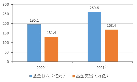 圖2 2020-2021年國家長期護(hù)理保險(xiǎn)試點(diǎn)基金收入與支出情況
