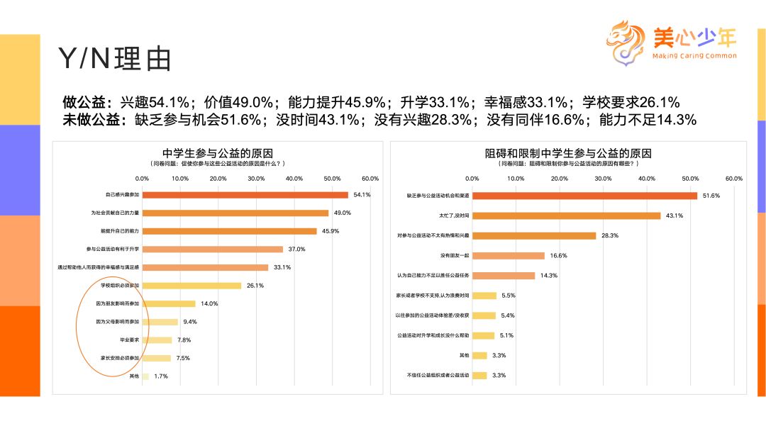 感謝主持人,同時也感謝易善、益行者、鳳凰公益在過去幾年對中學生公益實踐的持續(xù)關(guān)注和跟蹤研究。今年是中國公益研究院首次參與問卷分析,在此我受委托,代表合作三方機構(gòu)及研究院團隊,快速分享我們在數(shù)據(jù)分析方面的發(fā)現(xiàn)。