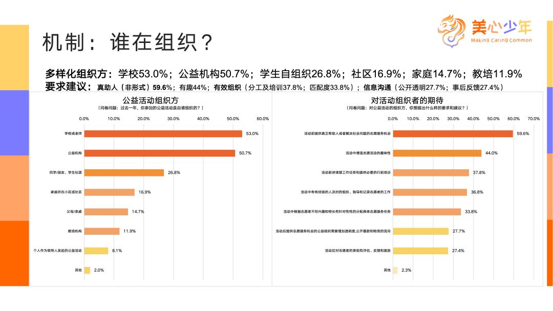 最后,我們呼吁:作為青少年公益活動的供給側(cè),我們要提升自己的服務(wù)水平。首先是這事要好玩,其次要方便,隨時隨地好參加;當然最本質(zhì)最主要的是孩子為主體,尊重他們的自主性。這是我們強烈的呼吁和號召。