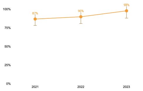 圖表1: 我國2021-2023年新生兒聽力篩查率變化情況(%)