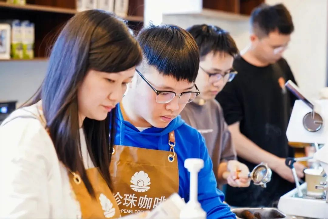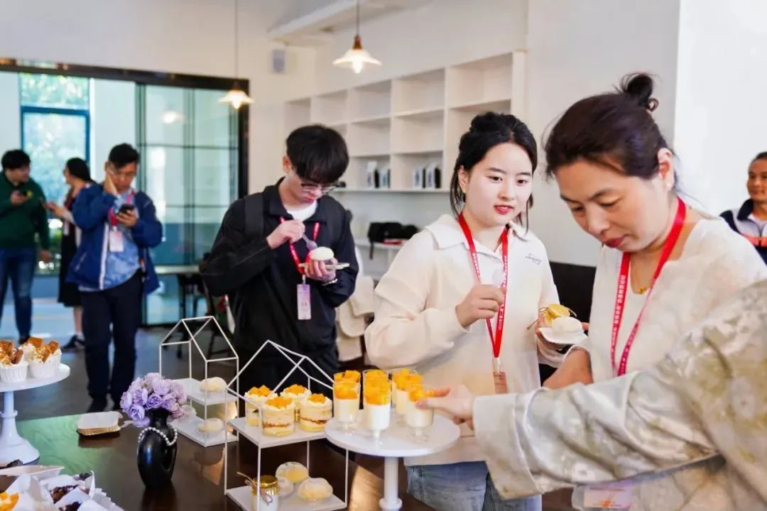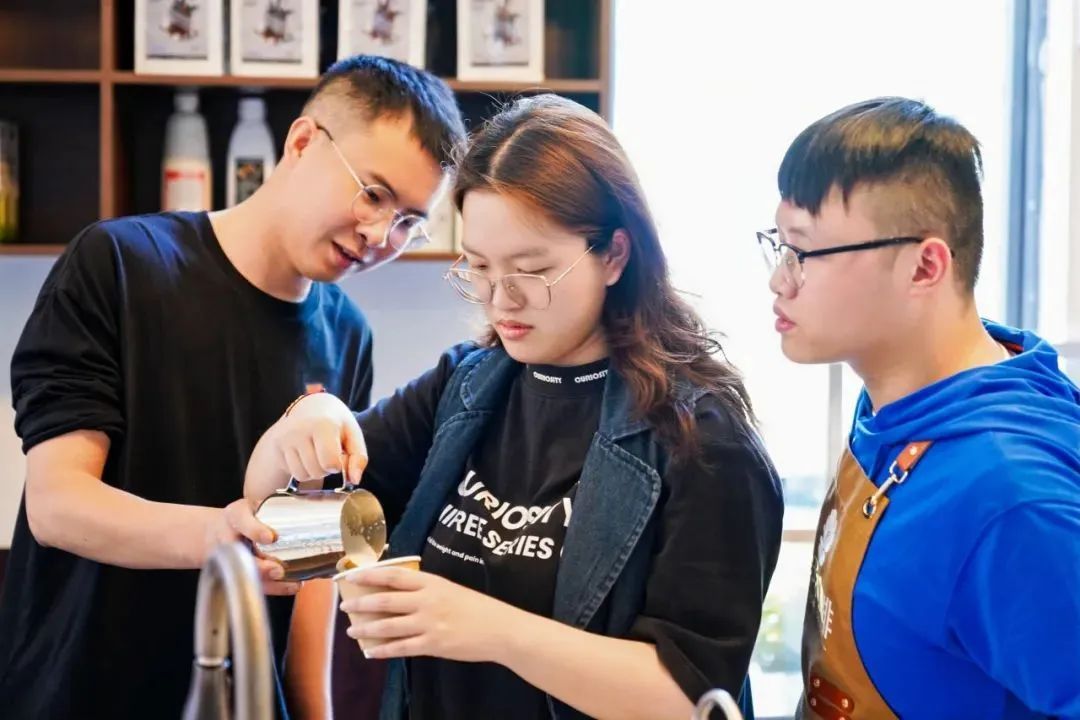 烘焙師帶領(lǐng)同學(xué)們制作精美甜點,咖啡師帶領(lǐng)伙伴們制作生椰拿鐵等飲品。