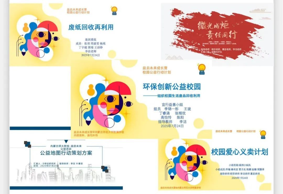 “益啟未來成長營”內蒙古師范大學附屬學校專場的圓滿結營,不僅讓同學們系統(tǒng)學習了公益知識,提升了項目設計與執(zhí)行能力,更在他們心中播下了公益的種子。相信這些青少年會帶著這份對公益的熱忱與思考,在未來積極踐行公益理念,用實際行動傳遞溫暖與力量。