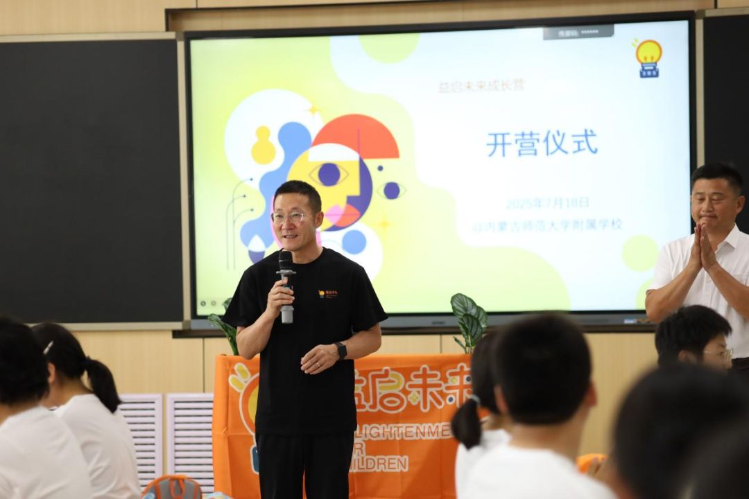 7月18日,“益啟未來成長營”正式開營。當天,內蒙古師范大學附屬學校學生處負責人蘇智強老師、音樂老師兼大隊輔導員陳寧、高一年級主任史建業(yè)老師代表學校,表達了對同學們的殷切期待,希望大家能扎實掌握公益知識,在實踐與交流中獲得成長,收獲寶貴的公益經驗。李曉波副校長也在百忙之中抽空來到學習現場,悄悄圍觀同學們上演“慈善情景劇”。
