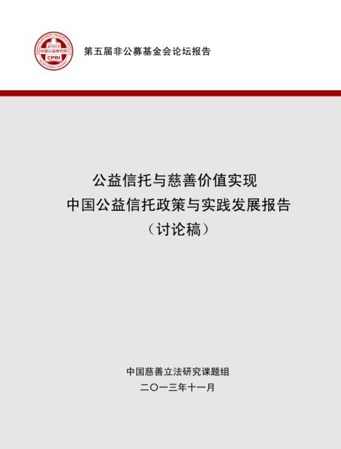 2013年11月14-15日,第五屆中國非公募基金會(huì)論壇召開。中國公益研究院主辦了其中的“慈善模式創(chuàng)新:中國公益信托現(xiàn)狀與未來路徑”專題研討,并在該研討會(huì)上發(fā)布主題報(bào)告《公益信托與慈善價(jià)值實(shí)現(xiàn)——中國公益信托政策與實(shí)踐發(fā)展報(bào)告》。