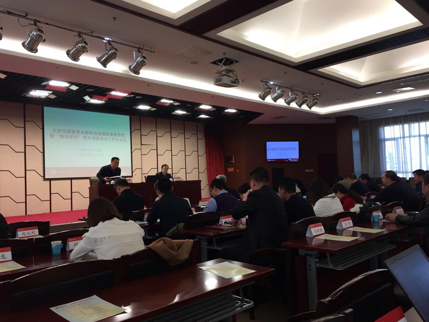 2017年11月15日,北京市居家養(yǎng)老服務(wù)設(shè)施摸底普查驗(yàn)收工作會(huì)在北京郵電會(huì)議中心召開。北京市民政局副局長(zhǎng)李紅兵,市民政局、老齡辦相關(guān)業(yè)務(wù)處室、市人大內(nèi)司辦、市發(fā)改委、市財(cái)政局、市規(guī)劃國土委、市住房城鄉(xiāng)建設(shè)委、市衛(wèi)生計(jì)生委、市國資委、市工商局、市婦聯(lián)、市殘聯(lián)主管領(lǐng)導(dǎo)及牽頭部門負(fù)責(zé)人,各區(qū)民政局負(fù)責(zé)設(shè)施普查工作的主管局長(zhǎng),區(qū)老齡辦主任以及項(xiàng)目普查的主要參與團(tuán)隊(duì)等出席了會(huì)議。