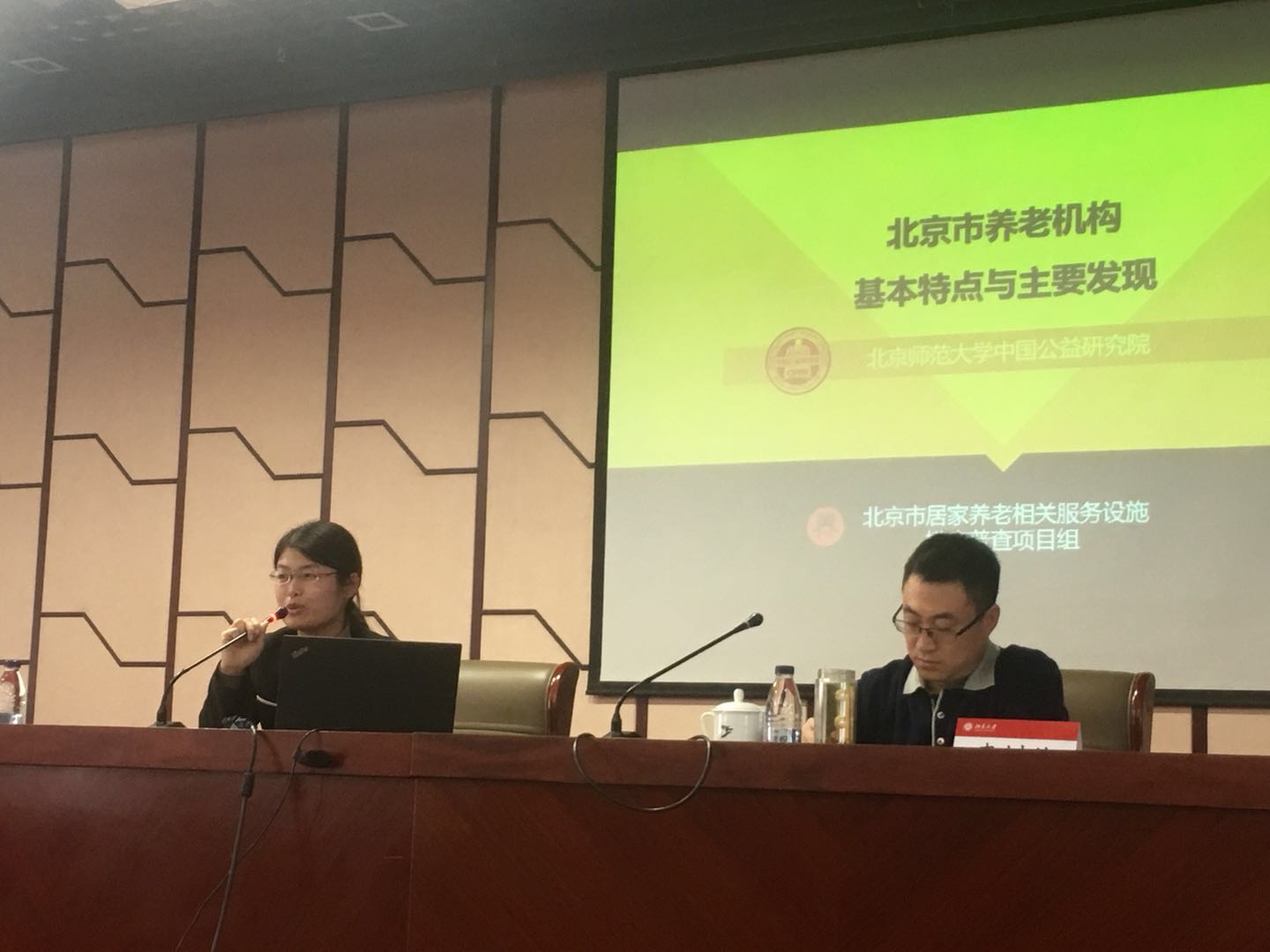在此次普查項(xiàng)目中,北京師范大學(xué)中國公益研究院承接了全市610家養(yǎng)老機(jī)構(gòu)的普查和分析工作,并作為北京市居家養(yǎng)老服務(wù)設(shè)施摸底普查驗(yàn)收的主要參與團(tuán)隊(duì)參加了本次會(huì)議。